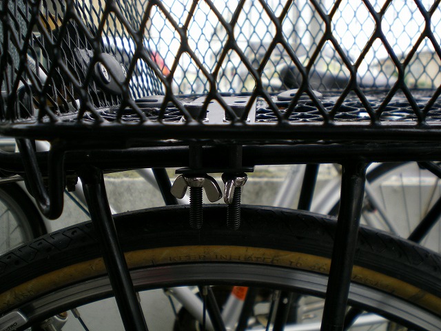 本来はスタンドの方をどうにかしなくてはいけないのですが、時間がかかりそうなので、とりあえず籠とリアキャリアの固定をガッチリしたものに変えようかと